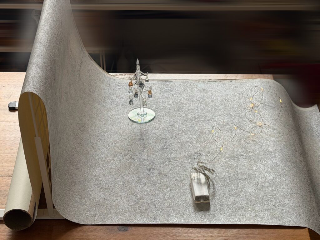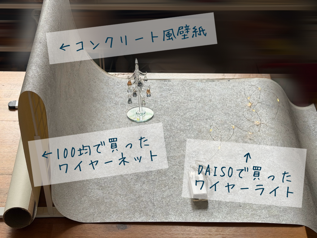 今回は、冬の冷たい空気を表現したくて、コンクリート風の壁紙を選びました。
